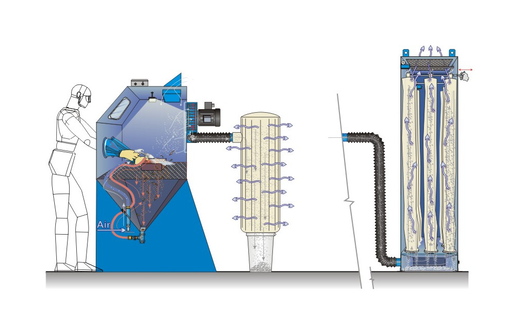 Recyclage de l’abrasif par gravité et filtration par sac ou manches sur un poste à succion Source : www.canablast.com